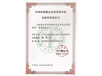 中華環(huán)保聯(lián)合會(huì)科學(xué)技術(shù)獎(jiǎng)自然科學(xué)獎(jiǎng)特等獎(jiǎng)